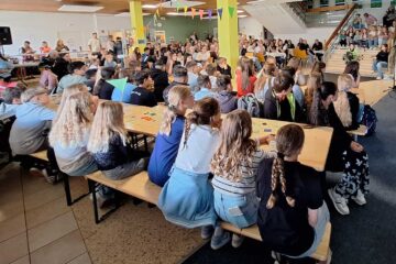 Ein einstudierter Cup-Song der Zehntklässler rundete wie auch zu Beginn der Gesang der Sängerinnen Saskia Balcarek, Celine Kolund, Madita Nölke und Tina Bogenschütz (10a/b) den feierlichen Abend musikalisch gelungen ab, wonach es anschließend ins Freie ging, um Luftballons mit selbst aufgeschriebenen Wünschen für die Zukunft feierlich in den Himmel aufsteigen zu lassen.