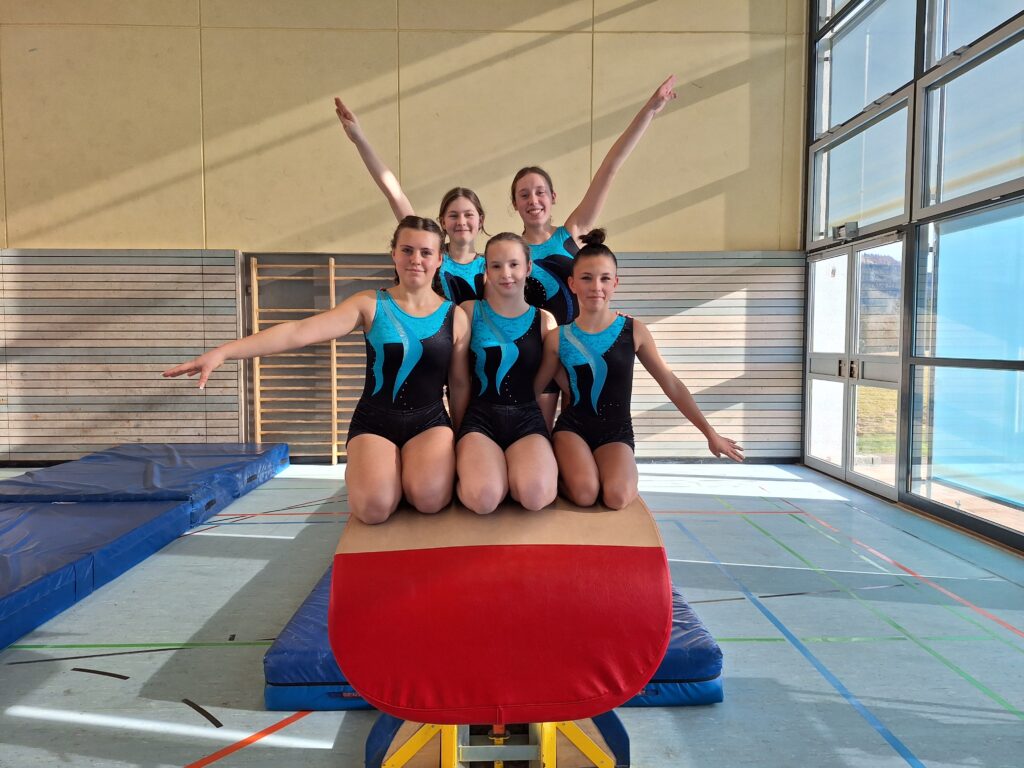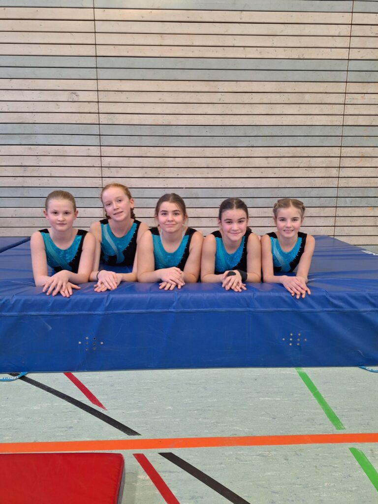 Auch die U14-Mannschaft, bestehend aus Lola, Nele, Joelle, Mila und Jovana, präsentierte sich motiviert und konzentriert in ihrem ersten Wettkampf bei Jugend traininert. In einem starken Teilnehmerfeld belegten sie am Ende mit 0,2 Punkten Rückstand auf Platz 4 einen tollen 5. Platz.