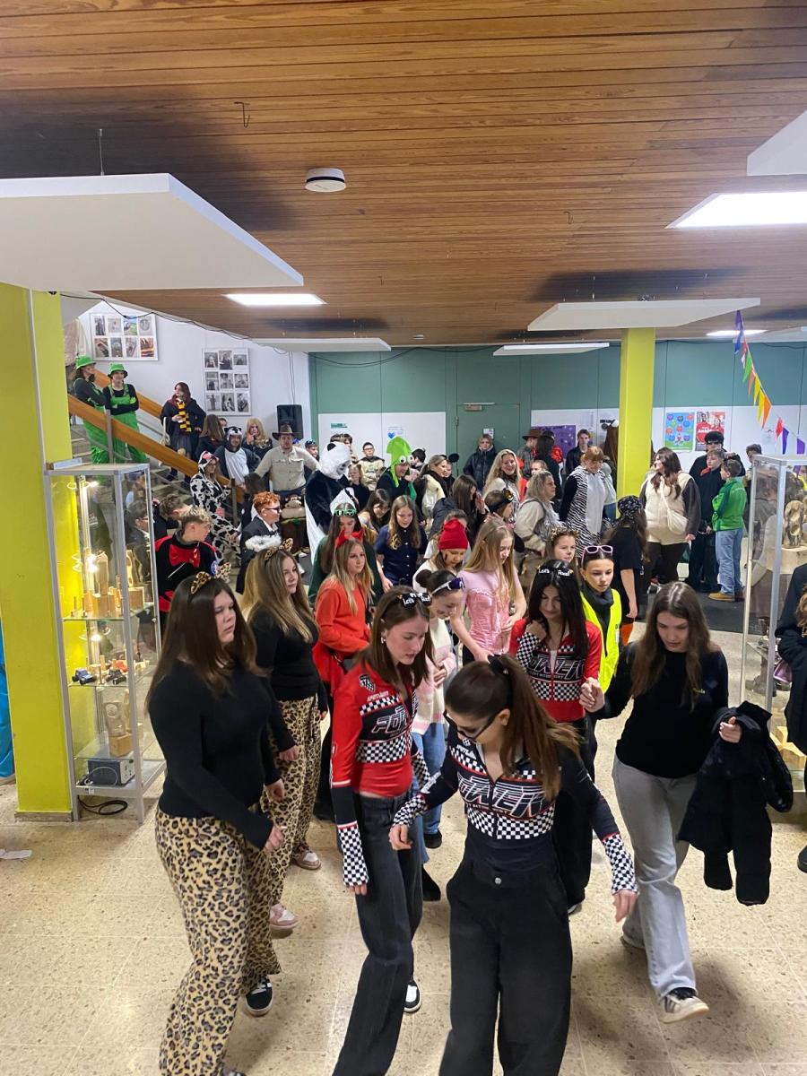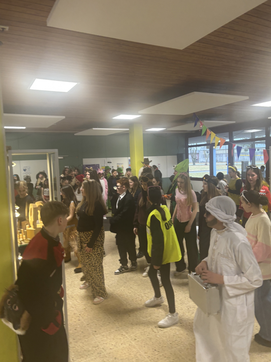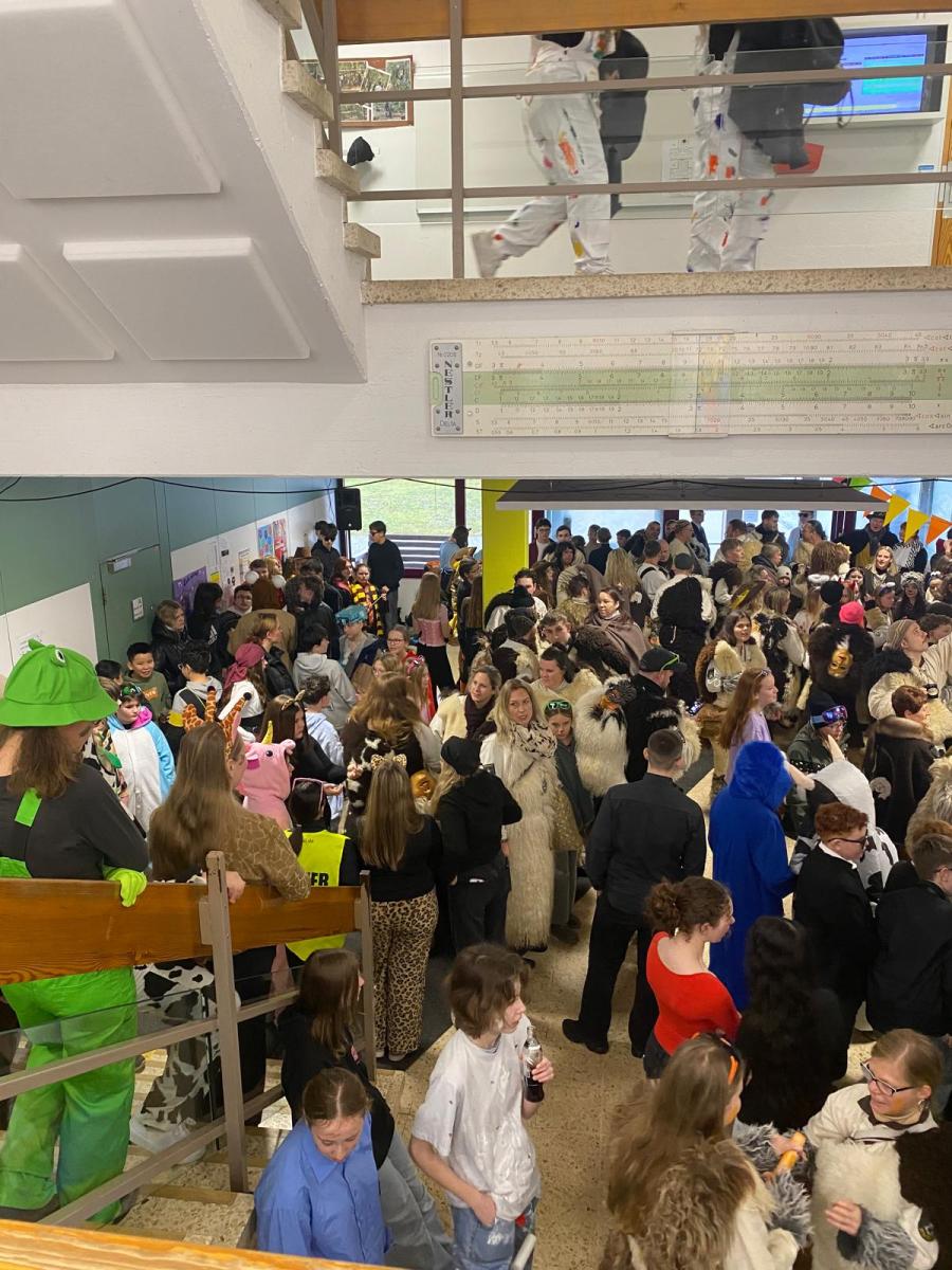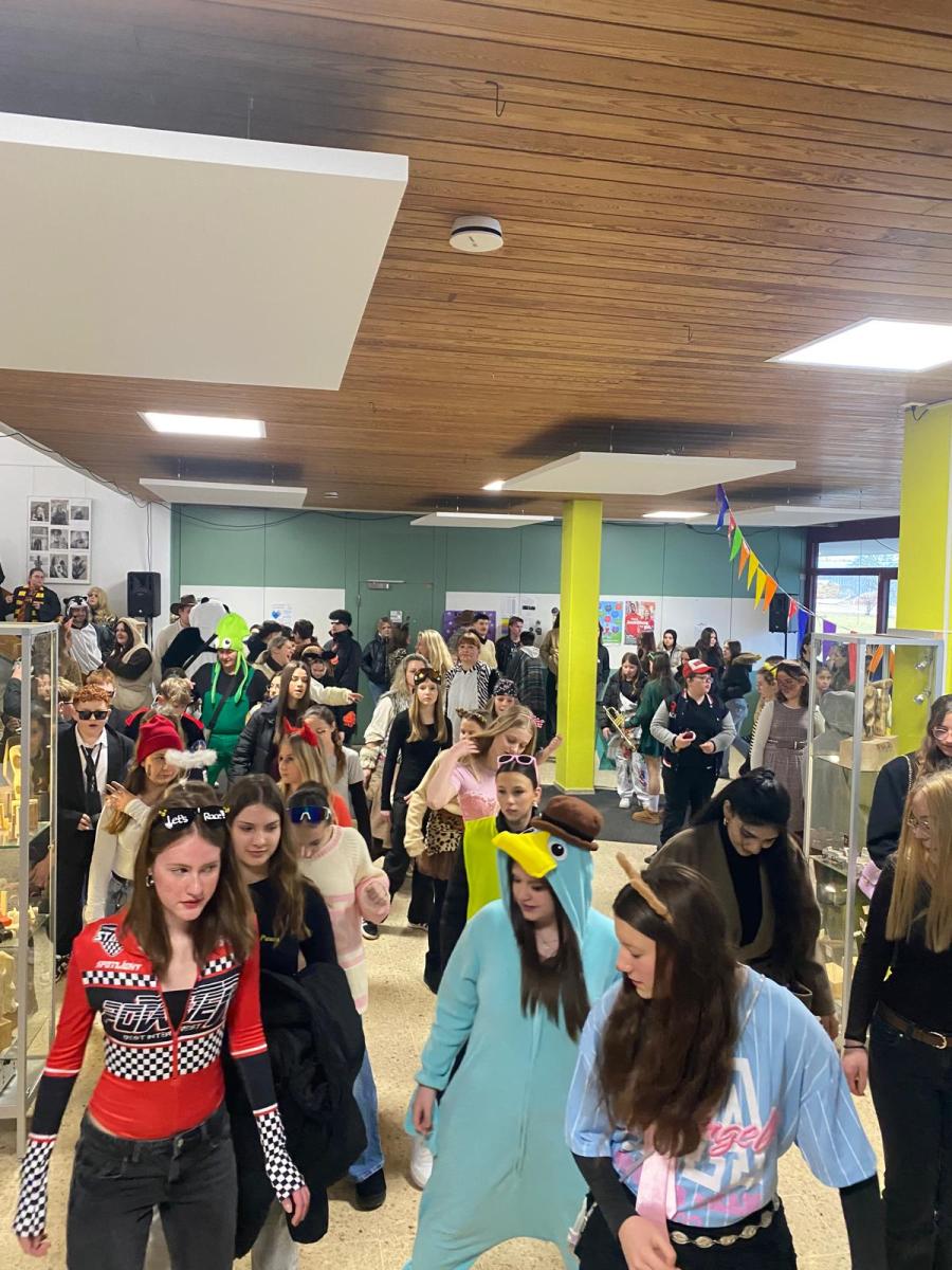 Am letzten Schultag vor den Ferien herrschte an unserer Realschule eine ganz besondere Stimmung: es wurde Fasnet gefeiert. Bereits am Morgen war deutlich zu spüren, dass dieser Tag anders als gewöhnlich verlaufen würde. Viele Schülerinnen und Schüler sowie Lehrkräfte erschienen in fantasievollen Kostümen. Ob lustig, kreativ oder ausgefallen – die Verkleidungen sorgten schon zu Beginn des Tages für gute Laune und viele lachende Gesichter.