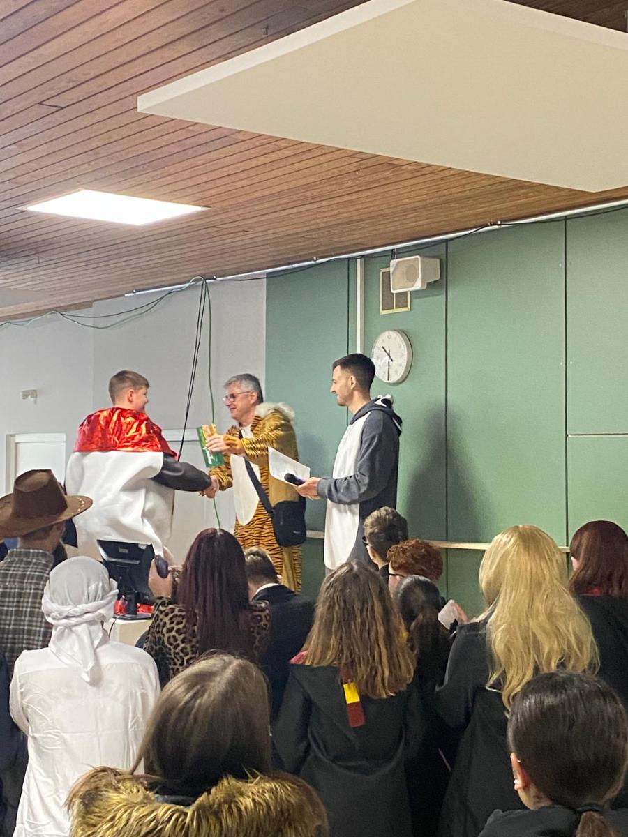 Zahlreiche Schülerinnen und Schüler nutzten die Gelegenheit, gemeinsam zu tanzen, zu feiern und den Fasching in vollen Zügen zu genießen. Den Höhepunkt bildete der Kostümwettbewerb, der das beste und originellste Kostüm des Tages prämierte: den diesjährigen Titel holte sich Kevin Miller aus der Klasse 10a.